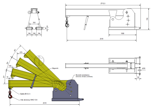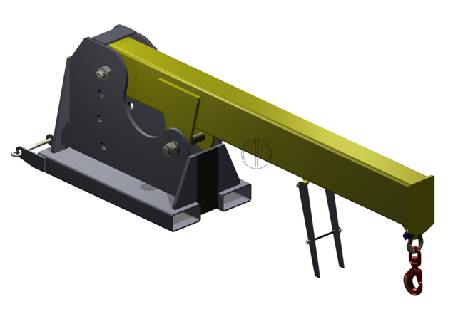 - Trawers jest przeznaczona do współpracy z widłami wózka widłowego i służy do transportu ładunków podwieszonych do jej haka. Przed montażem trawersy należy upewnić się, czy wózek widłowy jest w stanie przenieść odpowiednie obciążenie (podnoszony ładunek + masa trawersy) oraz czy będzie kompatybilny z trawersą. Środek ciężkości samej trawersy znajduje się w odległości maksymalnie 854 mm od początku profilu pod widły, a jej masa wynosi 480 kg i te wartości należy przyjmować przy kalkulowaniu nośności wózka widłowego. Środek ciężkości ładunku powinien znajdować się dokładnie pod punktem nośnym trawersy