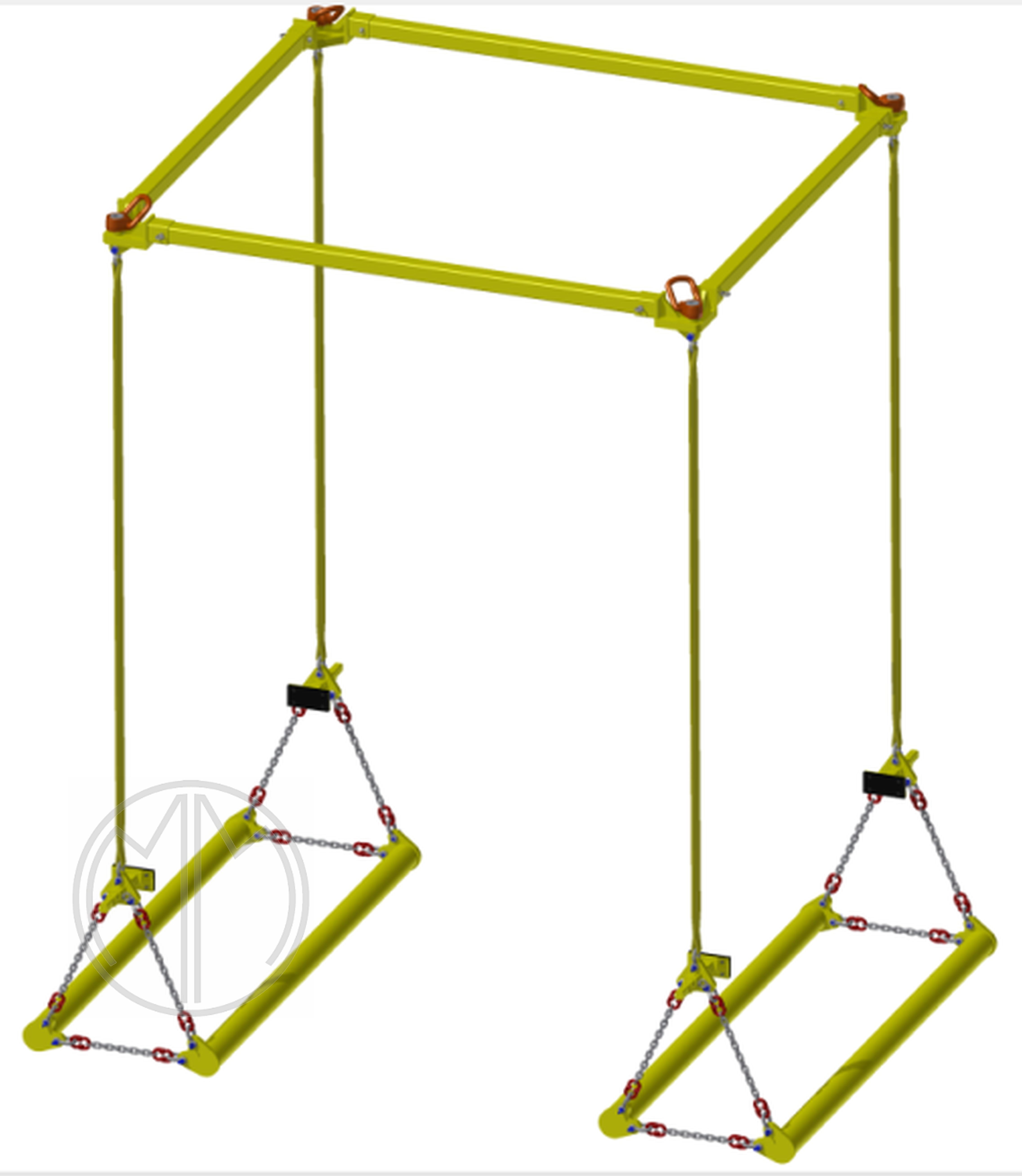 - Trawersa jest przeznaczona do podnoszenia pojazdów typu Unimog. Element, na którym trawersa jest podwieszana powinien być kompatybilny z ogniwem zbiorczym zawiesia i zapewniać odpowiednią swobodę ułożenia się elementów współpracujących
