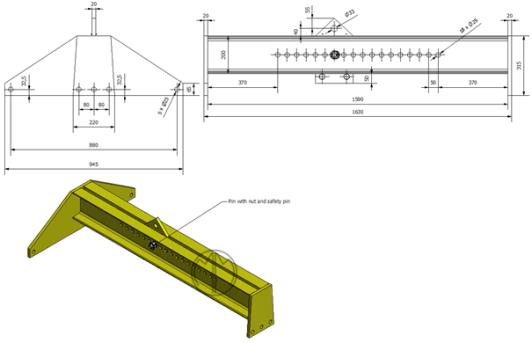 - Trawersa jest przeznaczona do podnoszenia ładunków posiadających punkty nośne w rozstawach zgodnych z rozstawami trawersy. Element, na którym trawersa jest podwieszana powinien być kompatybilny z uchem nośnym i zapewniać odpowiednią swobodę ułożenia się elementów współpracujących. Elementy zawieszane na hakach nośnych powinny zapewniać prawidłowe ułożenie w czasie pracy