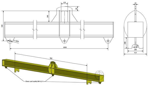 - Trawersa jest przeznaczona do podnoszenia ładunków posiadających punkty nośne w rozstawach zgodnych z rozstawami trawersy. Element, na którym trawersa jest podwieszana powinien być kompatybilny z uchem nośnym i zapewniać odpowiednią swobodę ułożenia się elementów współpracujących. Elementy zawieszane na hakach nośnych powinny zapewniać prawidłowe ułożenie w czasie pracy