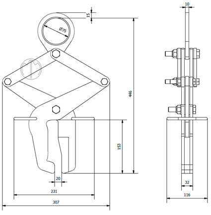 Uchwyt przeznaczony jest do podnoszenia szyn RL 1-54. Długie odcinki szyn powinny być transportowane przez kilka uchwytów rozłożonych na trawersie