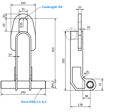 Uchwyt przeznaczony jest do podnoszenia profili posiadających punkty nośne zgodne z punktami nośnymi uchwytu