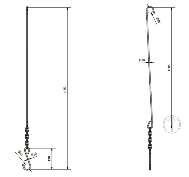 Zawiesie hakowe służy do transportu ładunków o kształcie dostosowanym do kształtu i rozmiaru gardzieli